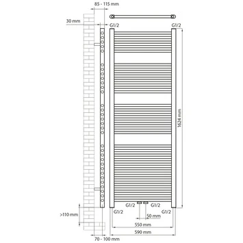 | Meegeleverde montagematerialen | Radiator, bevestigingsmateriaal, wandsteunen, ontluchtingsventiel, blindstopper, montage instructie |