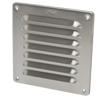 Dit RVS schoepenrooster heeft een afmeting van 15,5cm bij 15,5cm. Dit rooster gebruikt u om ventilatiekanalen af te dekken. U monteert het schoepenrooster eenvoudig op de buitenmuur of deuren. Zo zorgt het schoepenrooster voor natuurlijke toevoer van lucht, maar het kan ook dienen om gaten af te dekken. Door de vorm van de schoepen kan regen niet inslaan en wordt het ventilatiekanaal niet nat. Het rooster is stevig door de gestanste vorm en sterk RVS. Het is tevens duurzaam en onderhoudsvrij. Het rooster is voorzien van vliegengaas om insecten te weren uit het ventilatiekanaal.