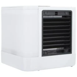 Deze Sorrento air cooler is perfect voor in de zomer. De watertank van de Air cooler is makkelijk te vullen tot 375 ml. Dit is goed voor een werking van minimaal 4 uur. Je kan de luchtkoeler zetten op 3 verschillende standen. De airconditioner bevat ook nog 7 kleuren sfeerverlichting wat zorgt voor instant sfeer. Hij krijgt zijn voeding via een micro USB- kabel van 1,1 meter.